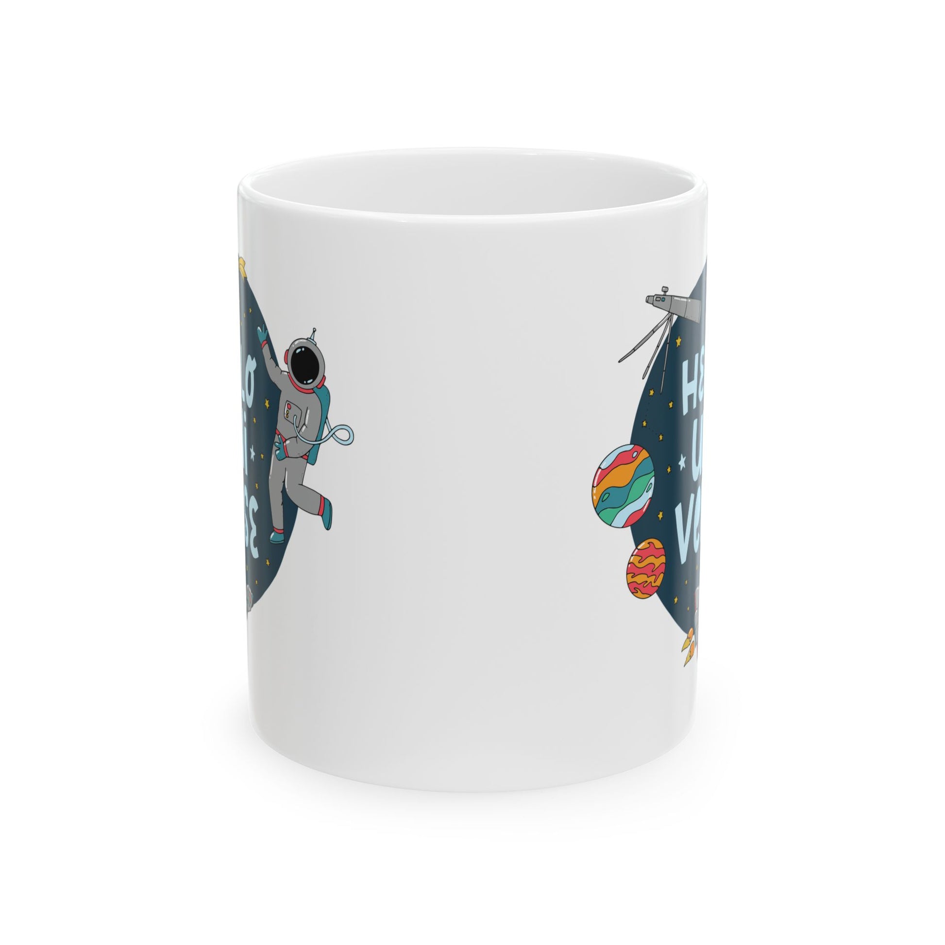 Explore the cosmos with this vibrant ceramic mug that brings a sense of wonder and adventure to your daily routine. Perfect for coffee lovers, tea enthusiasts, or anyone who enjoys a little bit of magic in their day. Its eye-catching design featuring astronauts and planets will inspire creativity and spark conversations, making it a great addition to your kitchen or office. This mug is ideal for gifting on holidays such as Christmas, birthdays, or Graduation, and is a charming way to celebrate occasions like space-themed parties or gatherings. Enjoy your favorite beverages while admiring the celestial theme, and let this mug elevate your everyday experience!
