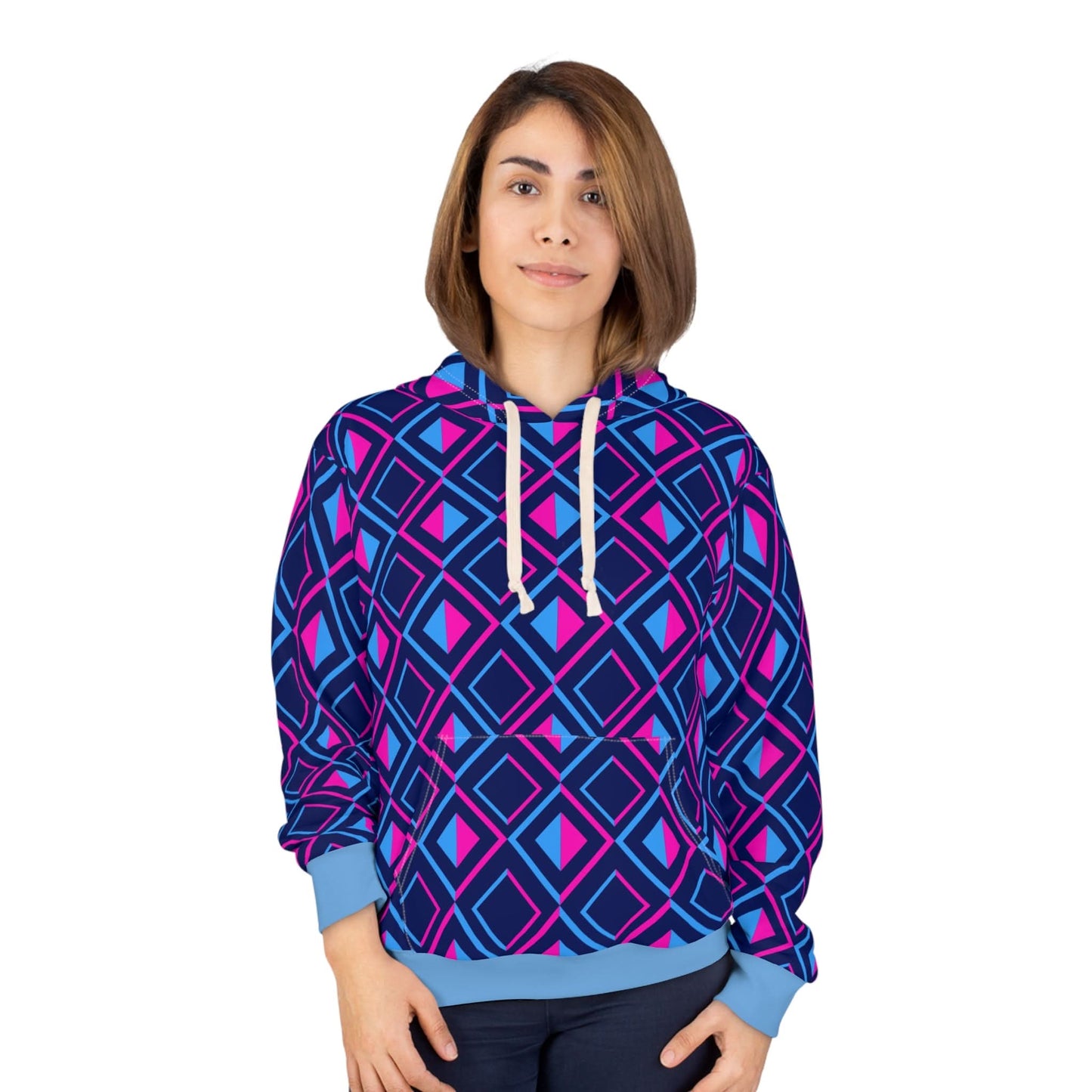 This Pullover Hoodie is made for warmth and comfort. Made to be easily customizable without white lines at the seams, this all-over print pullover hoodie is waiting for you to add a great design and it instantly becomes fashionable. It features a large front pocket, a hood with a drawstring, and is custom cut and sewn.