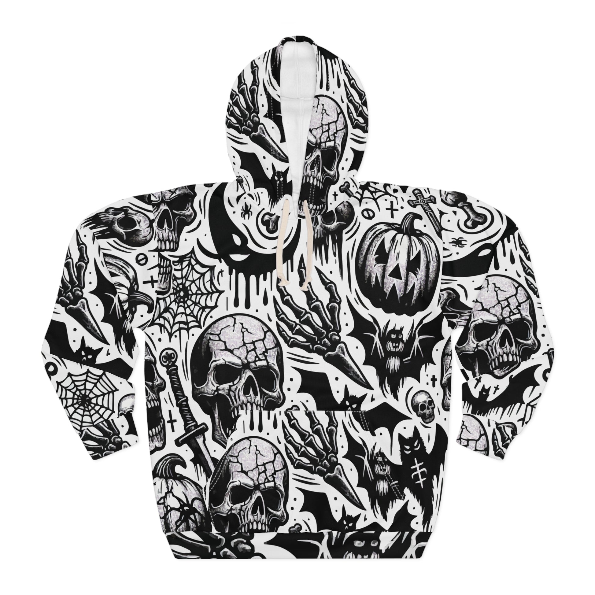 Gothic Skull Print Hoodie – Spooky Style for Halloween