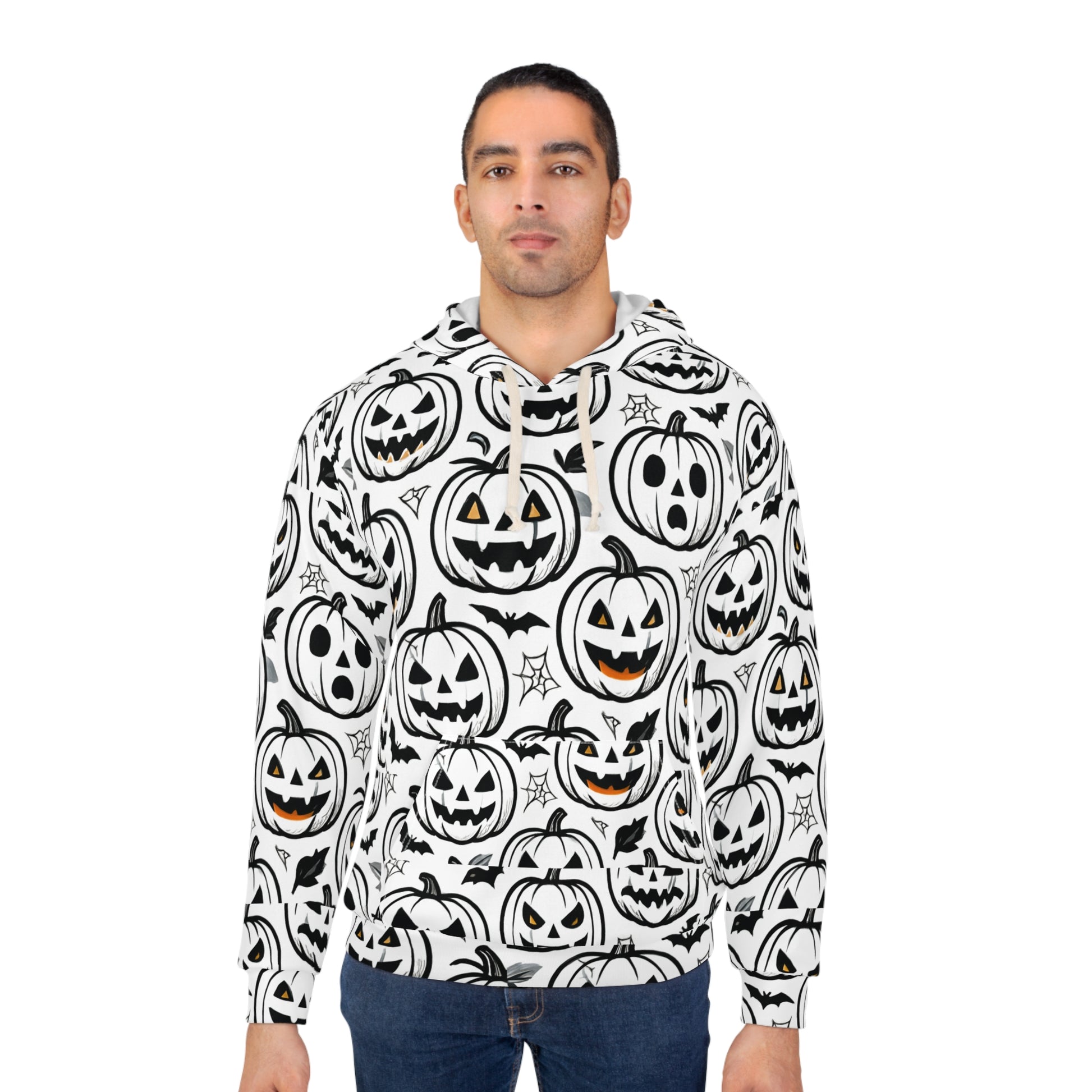Experience the spirit of the season with this vibrant Unisex Pullover Hoodie. Featuring a fun and spooky all-over design, this hoodie is perfect for those cozy fall days and Halloween festivities. The bright colors and playful patterns will make you stand out while keeping you comfortable and warm. Ideal for casual outings, pumpkin carving parties, or just lounging at home, this hoodie is a go-to choice for anyone who loves to celebrate the season. Great for teens, young adults, or anyone with a festive spirit, it makes a thoughtful gift for Halloween lovers and is perfect for trick-or-treating, costume parties, or as a fun outfit to wear during autumn celebrations.