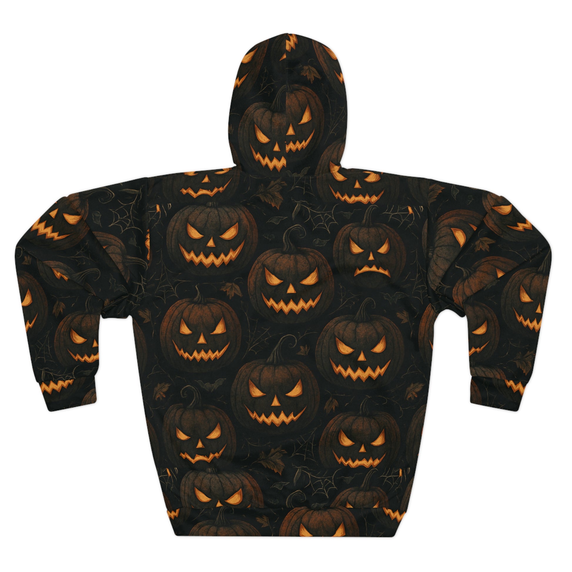 Embrace the festive spirit with this striking Pullover Hoodie, perfect for those cozy fall evenings. Designed with an eye-catching all-over pumpkin pattern, this hoodie exudes a playful Halloween vibe, making it an ideal choice for spooky season celebrations and gatherings. Whether you’re heading to a costume party, enjoying a haunted house, or simply curling up at home, this hoodie keeps you stylish and warm. Perfect for individuals who love to express their festive side, it also makes a fantastic gift for friends or family who adore Halloween. This versatile piece can be a staple in your fall wardrobe, adding flair to everyday activities or even as a quirky element in casual outings.