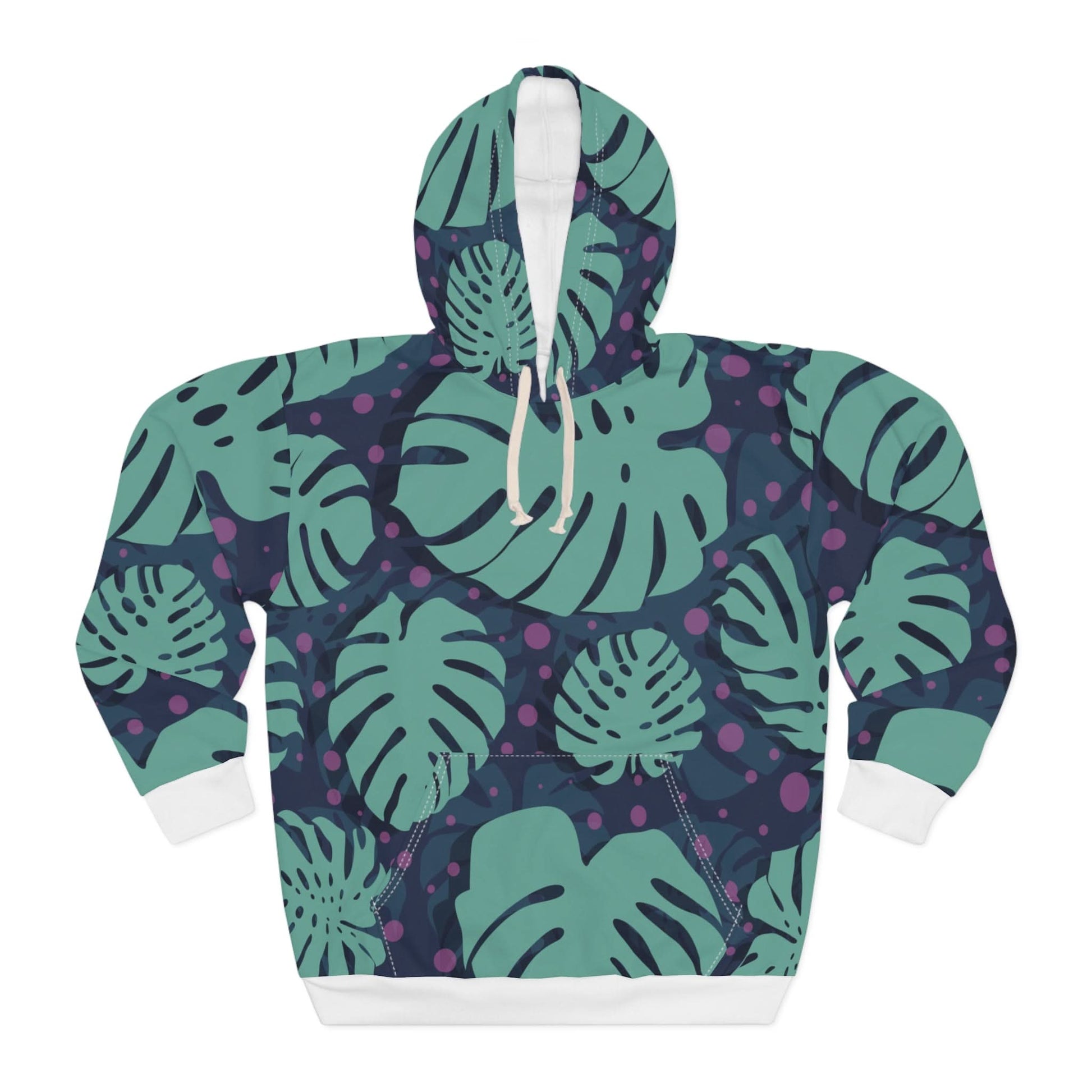 This Pullover Hoodie is made for warmth and comfort. Made to be easily customizable without white lines at the seams, this all-over print pullover hoodie is waiting for you to add a great design and it instantly becomes fashionable. It features a large front pocket, a hood with a drawstring, and is custom cut and sewn.