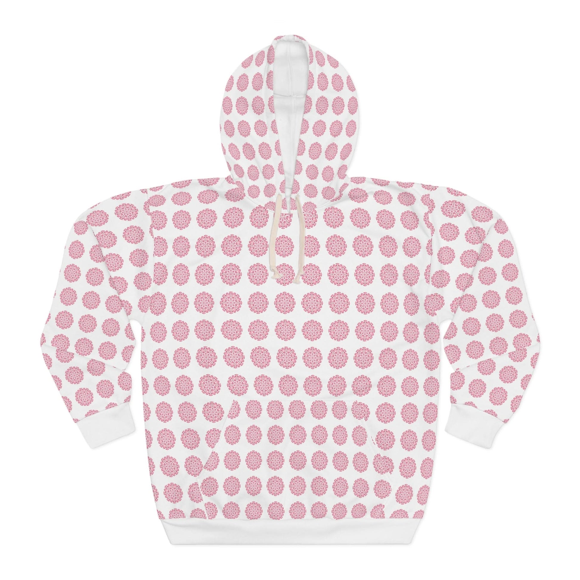This Pullover Hoodie is made for warmth and comfort. Made to be easily customizable without white lines at the seams, this all-over print pullover hoodie is waiting for you to add a great design and it instantly becomes fashionable. It features a large front pocket, a hood with a drawstring, and is custom cut and sewn.