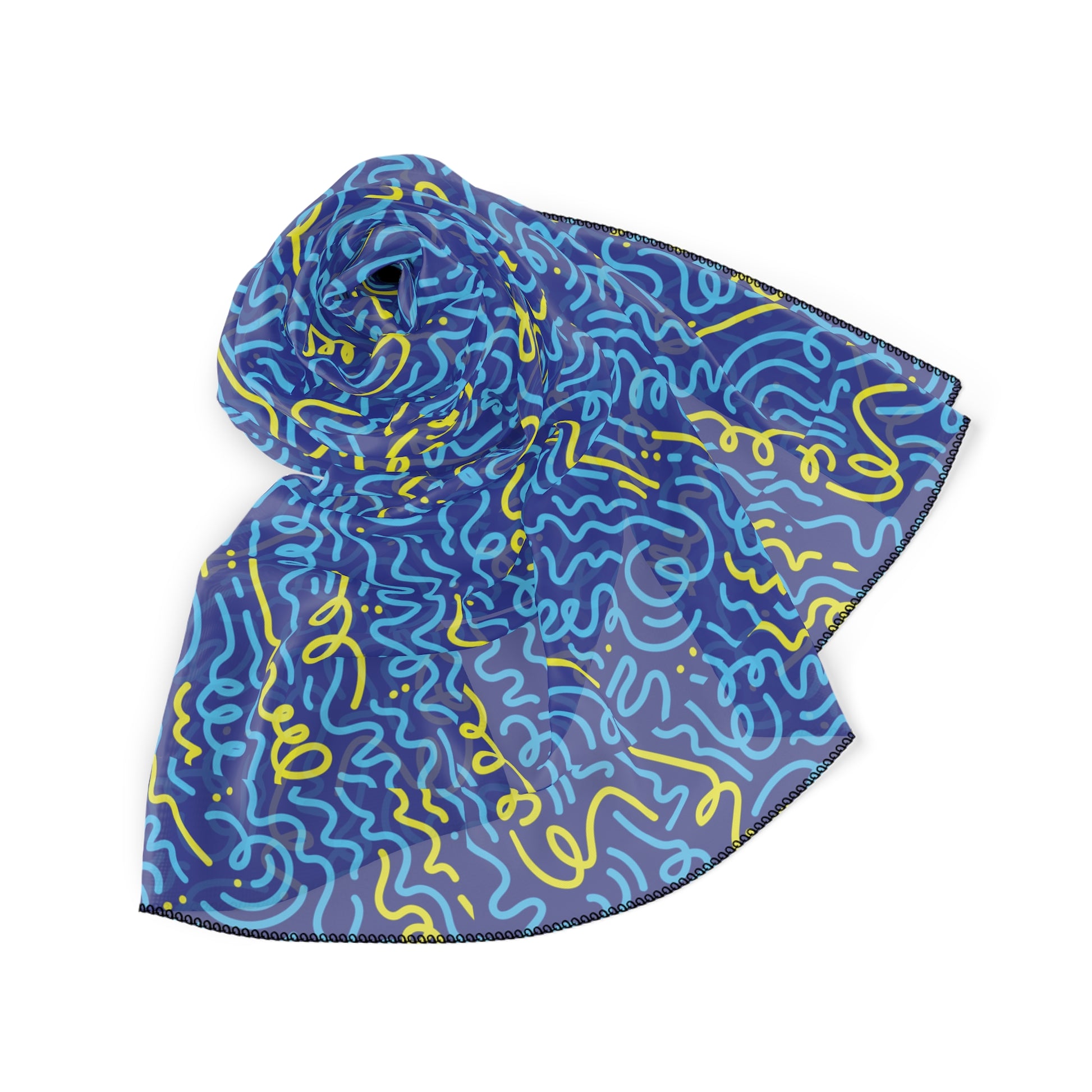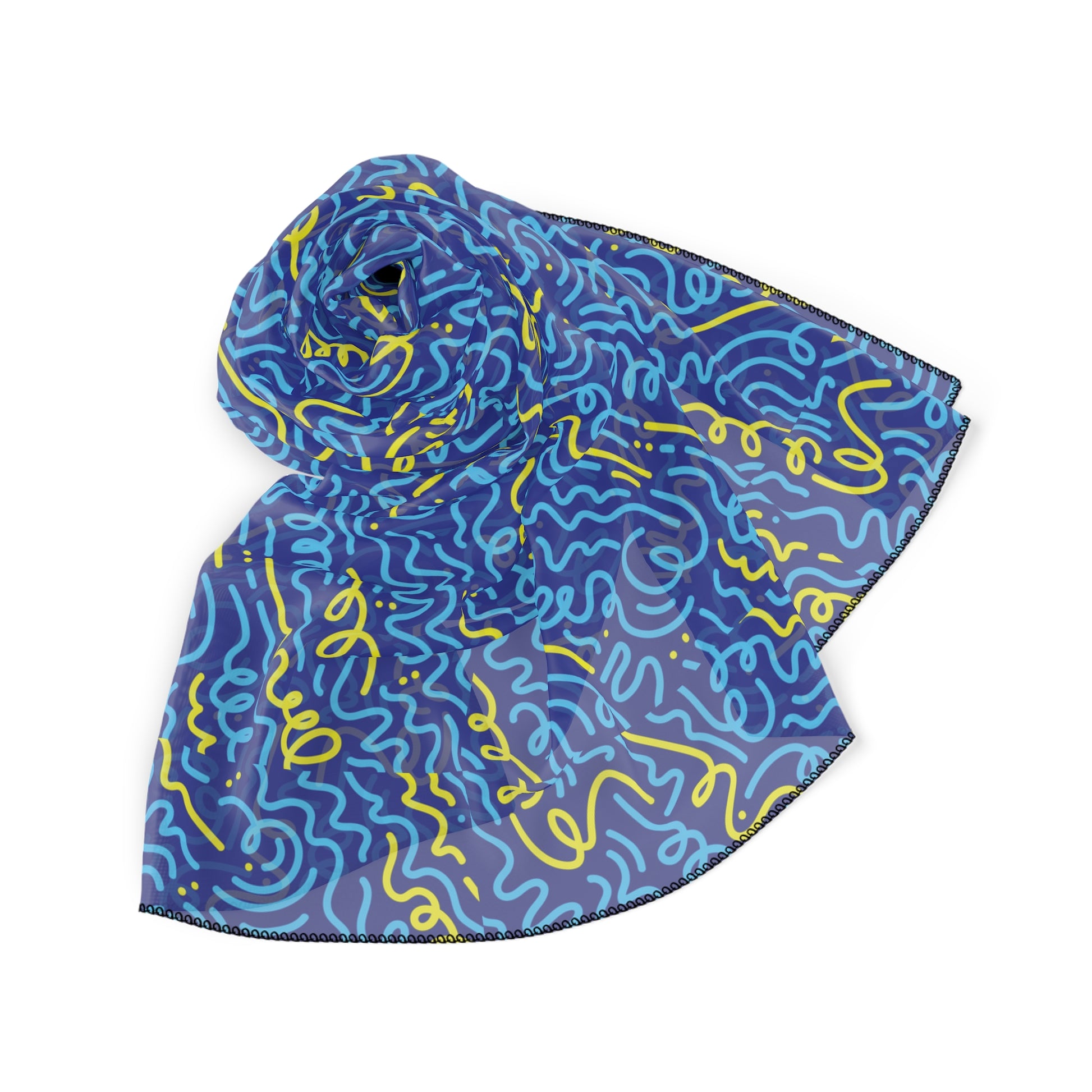 This Ocean Drift scarf is made from 100% Polyester, with options in Poly voile and Poly chiffon. Both materials deliver a silky, breathable texture that feels weightless against the skin. Inspired by the endless movement of water, it’s a versatile accessory to bring a calming yet striking edge to any outfit.