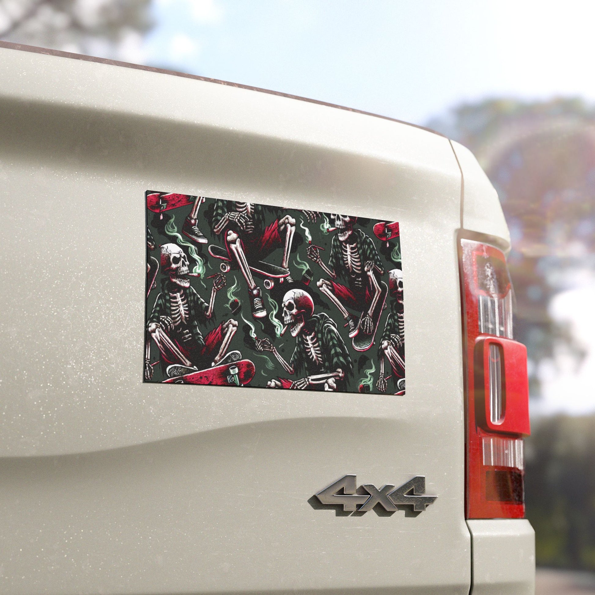 Skeleton Skateboard Car Magnets | Fun Halloween Decor, Unique Gift for Skaters, Auto Accessories, Quirky Home Decor
