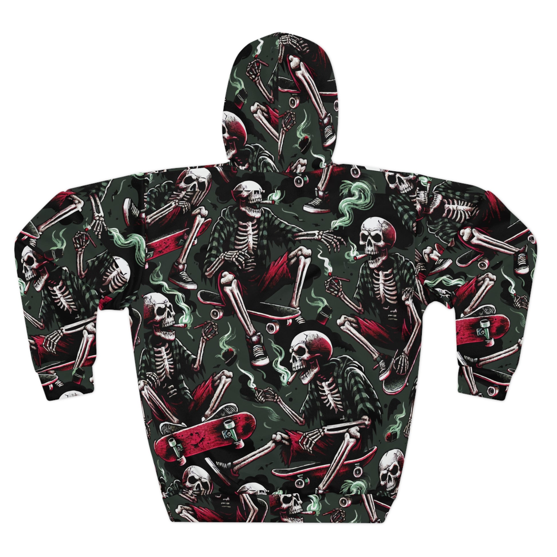 Skeleton Skateboarding Unisex Hoodie, Halloween Fashion, Skull Pullover, Streetwear Style, Cozy Hoodie for Skaters