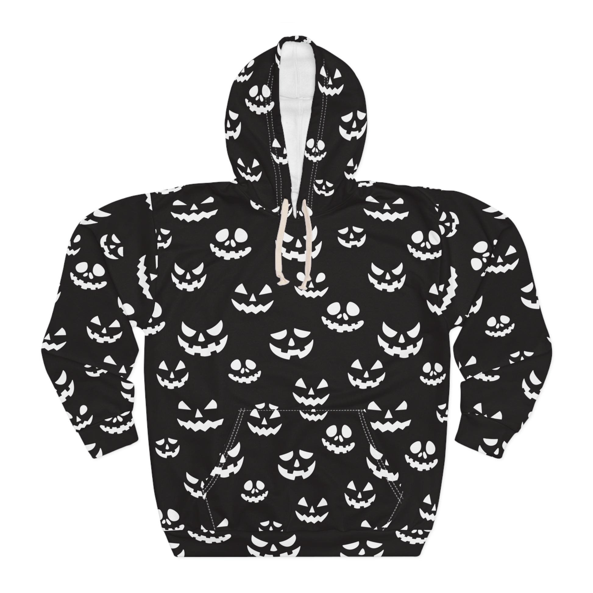 Experience cozy comfort and vibrant style with this Unisex Pullover Hoodie. Featuring a playful all-over design, this hoodie is perfect for adding a fun touch to your casual wardrobe. Its spacious kangaroo pocket is ideal for keeping your hands warm on chilly days, while the adjustable hood allows for a customized fit. Crafted from durable 100% polyester, this medium-weight hoodie is designed to hold its shape and dry quickly, making it suitable for any adventure. Ideal for those who love to celebrate Halloween or enjoy festive gatherings, this hoodie is perfect for casual outings, cozy nights in, or seasonal festivities. Get ready to embrace the spirit of fun and creativity with this unique piece!