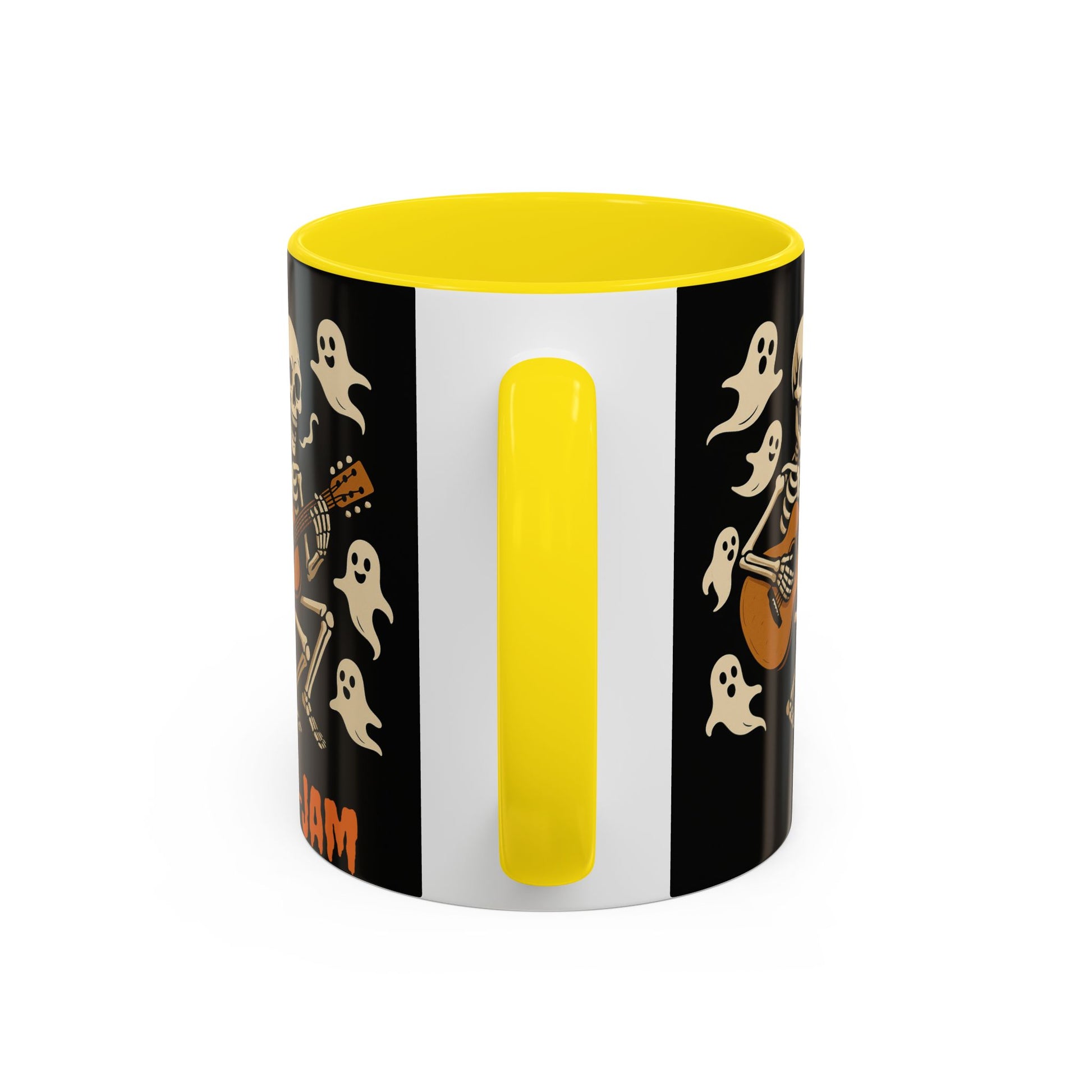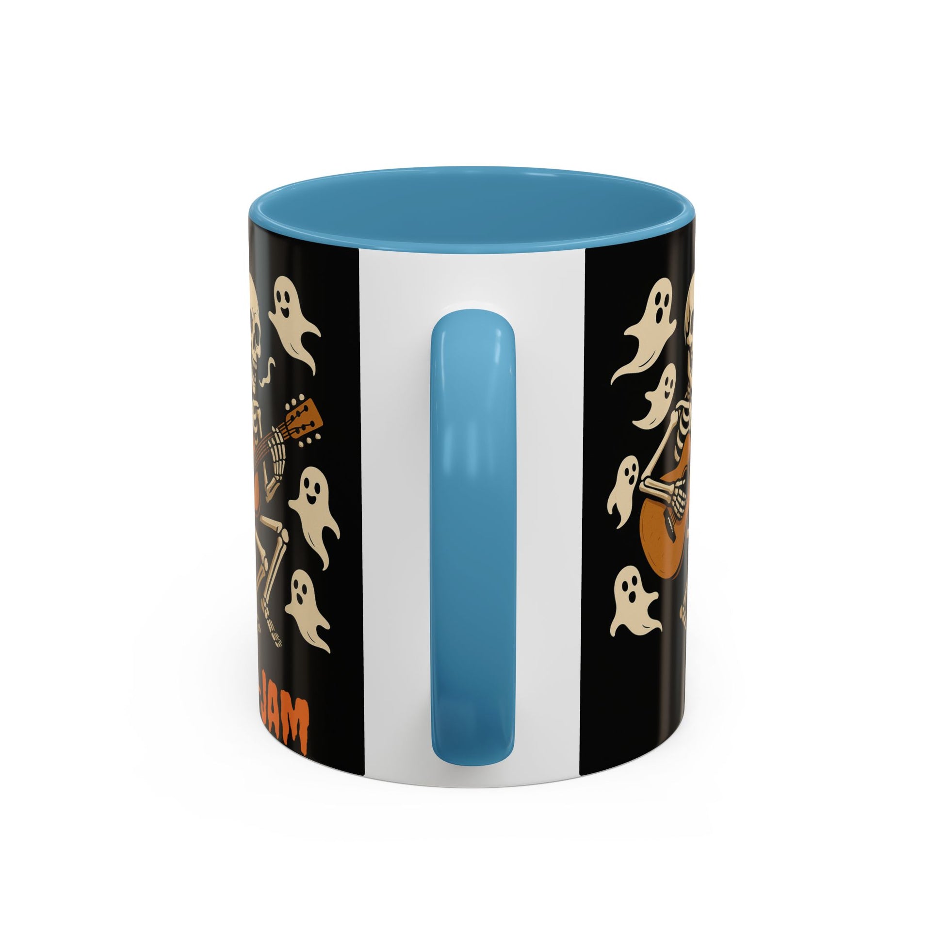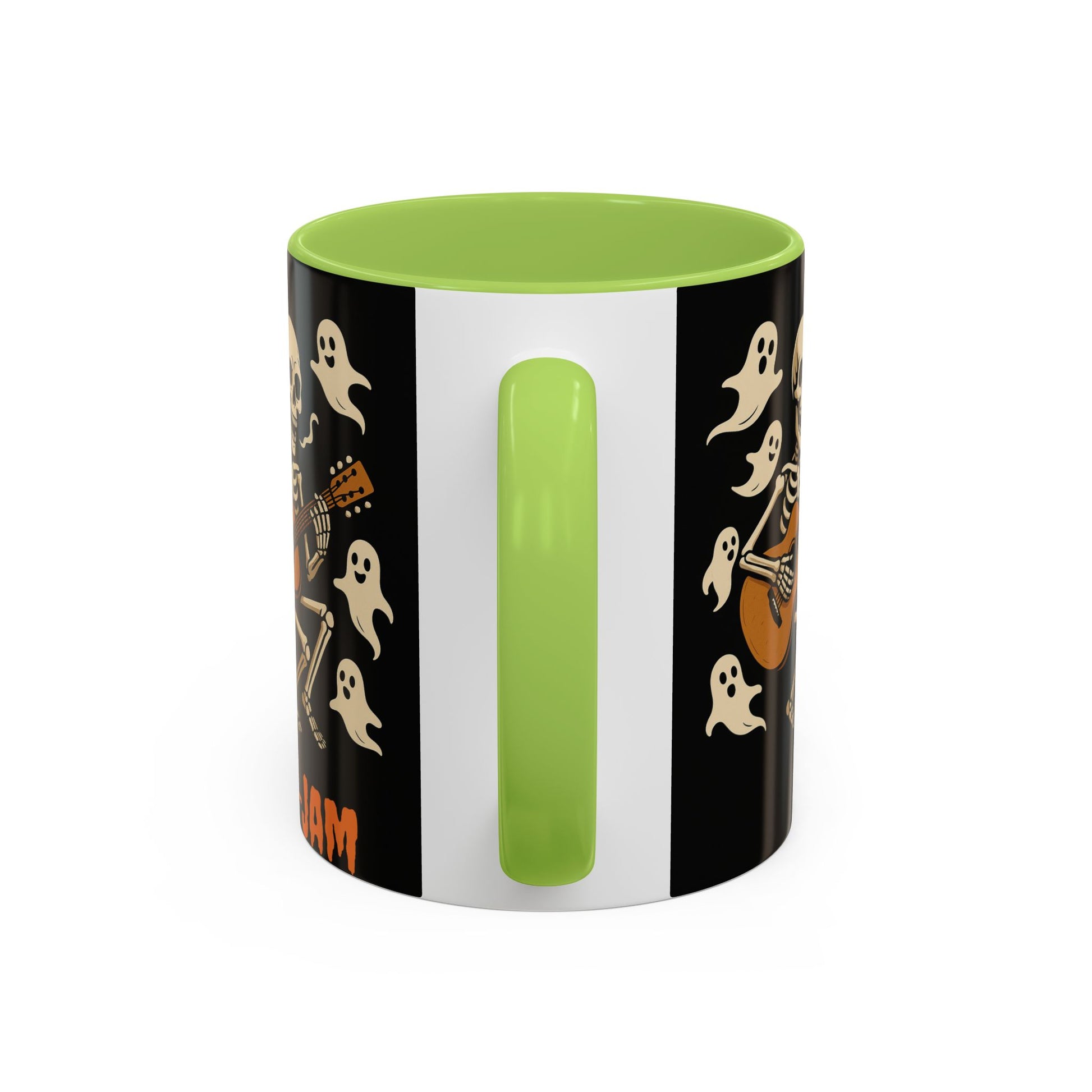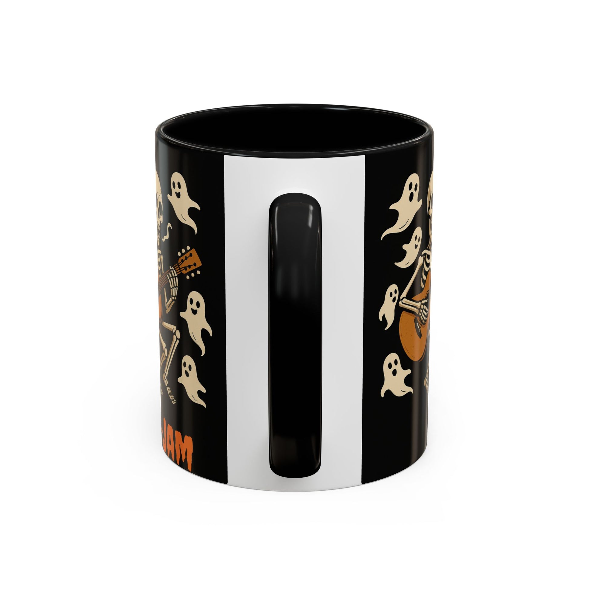 Spooky Skeleton Coffee Mug, Halloween Decor, Bone-Jam Ghost Mug, Gift for Music Lovers, Unique Drinkware