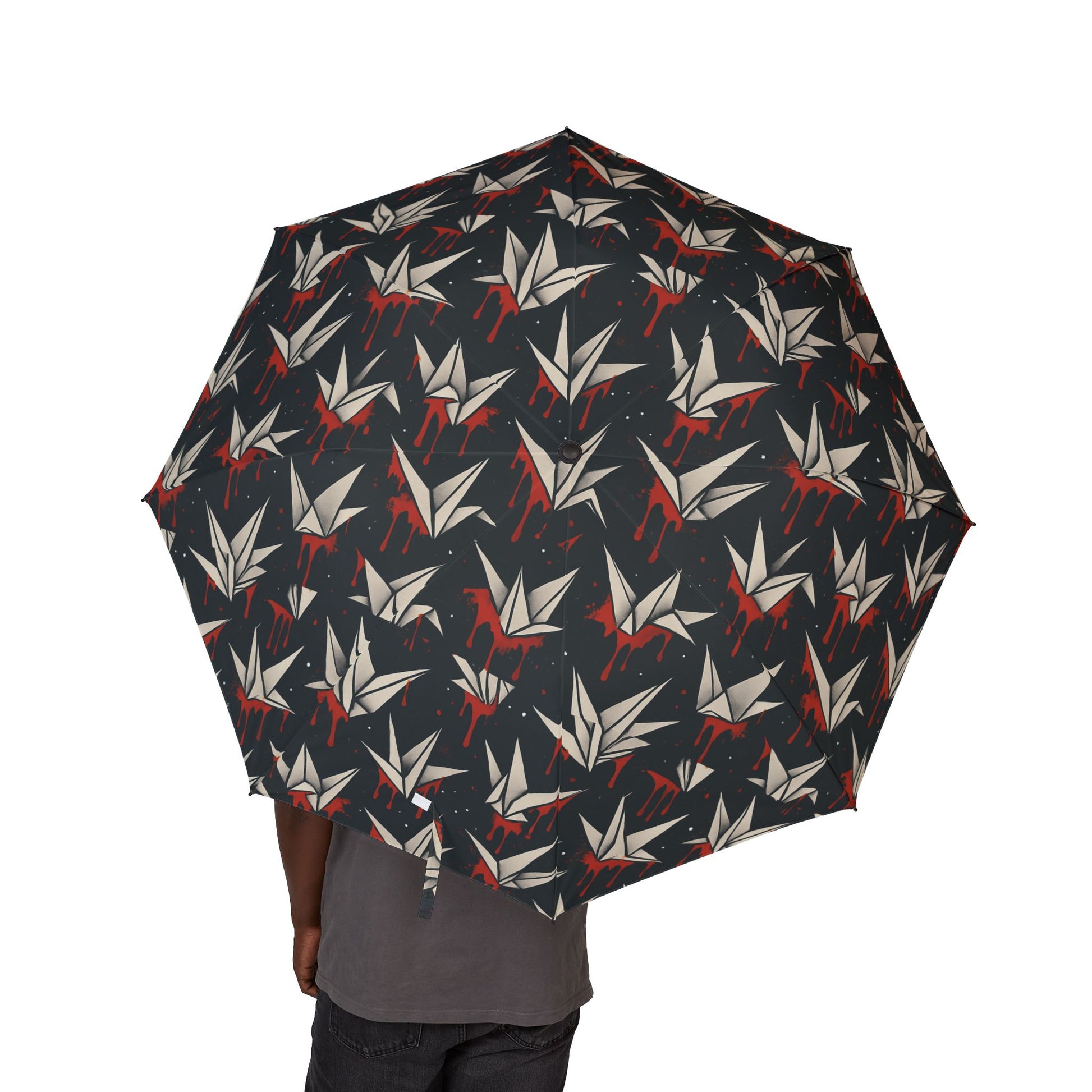 Stylish Semi-Automatic Umbrella with Crane Print | Travel, Rainy Days, Outdoor Events, Gifts, Fashion Accessories